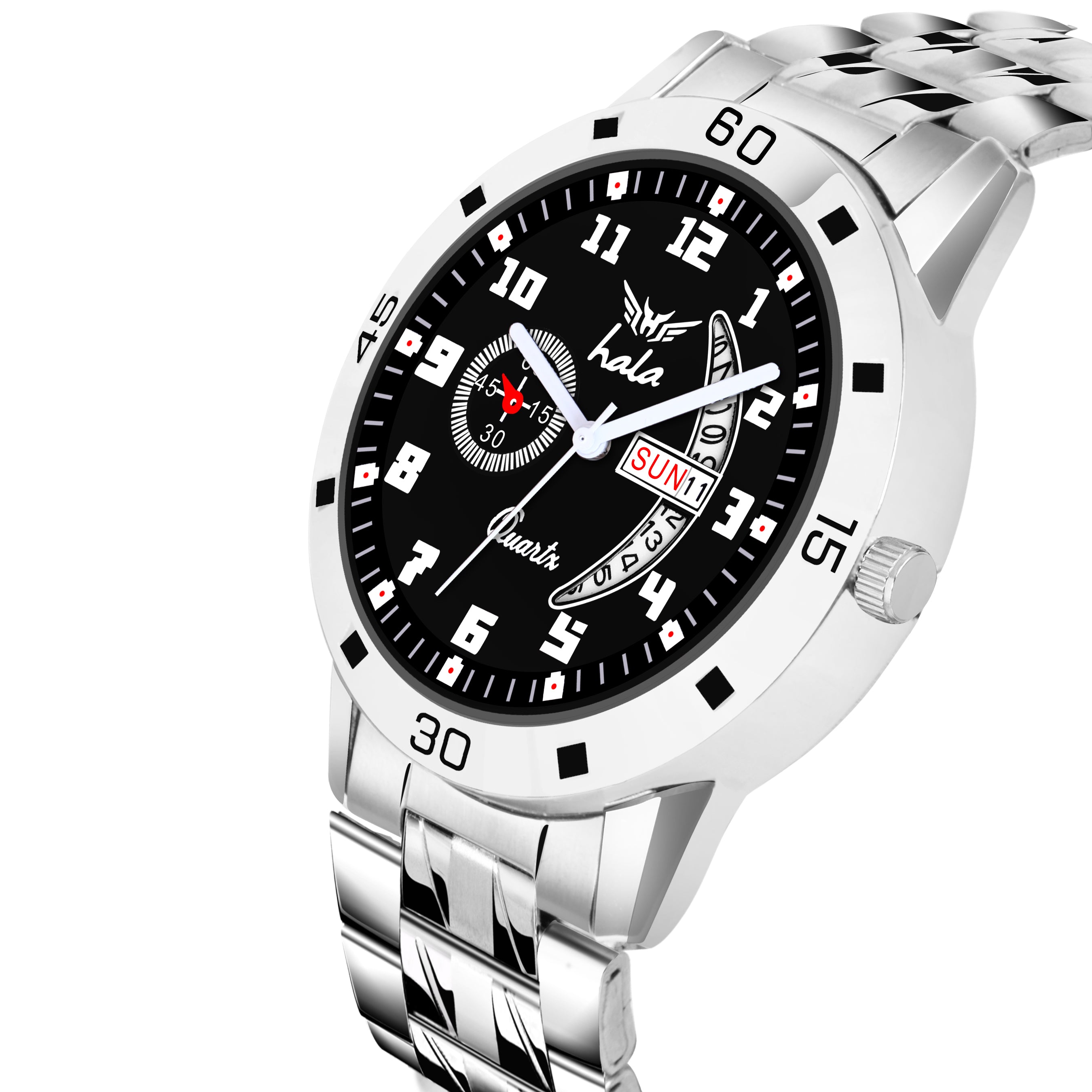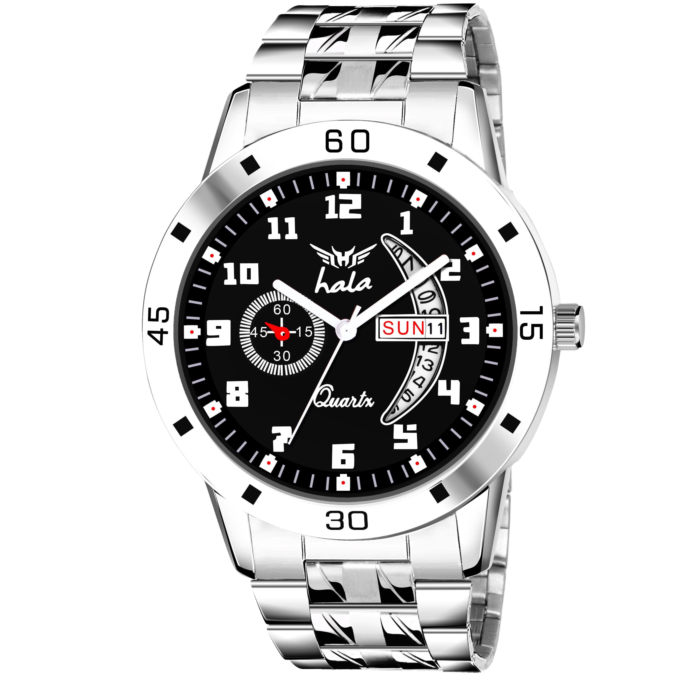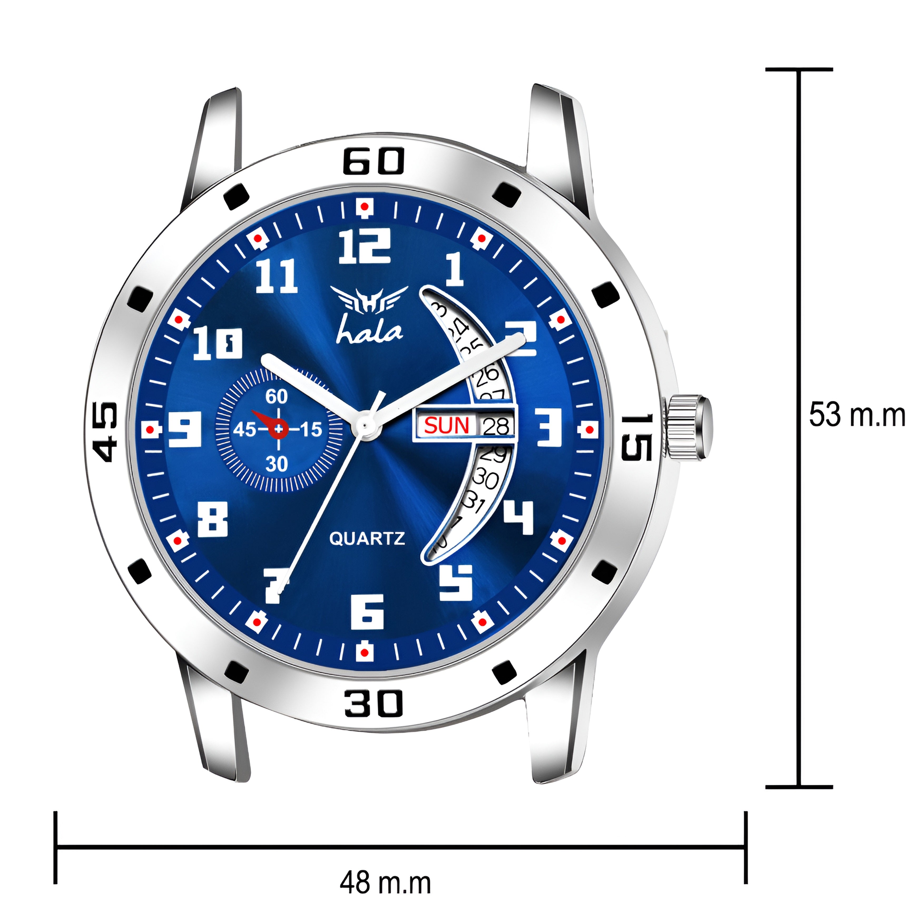 Enhance your style with the Hala 8188 Men's Analog Day & Date Watch. Featuring a rich blue dial, numeric hour markers, and a silver stainless steel strap, this watch offers the perfect balance of elegance and functionality. The day and date display adds practicality to its stylish appearance, while the sturdy build ensures durability. Ideal for men who value class and precision, this watch complements both business and casual looks effortlessly.
