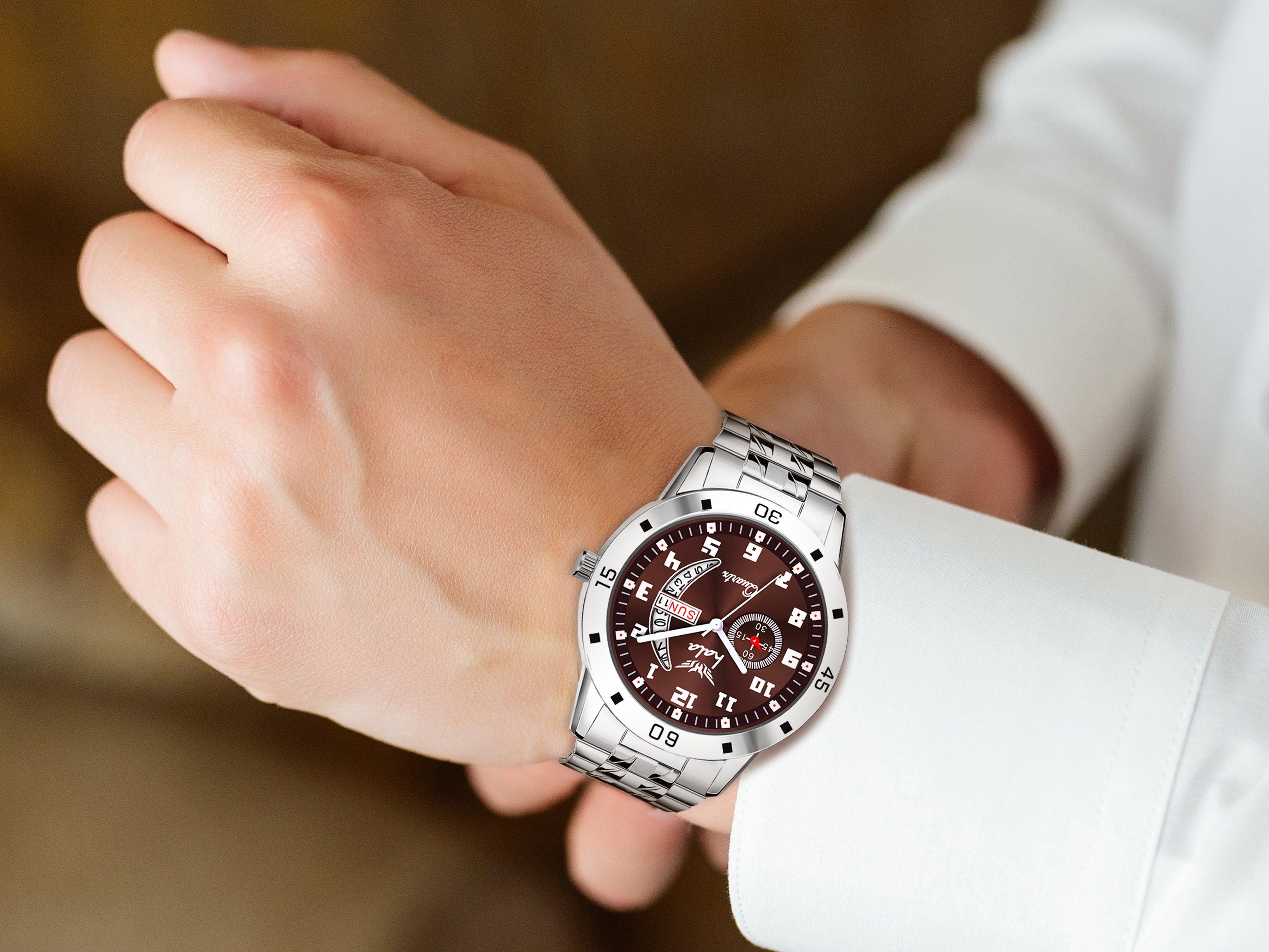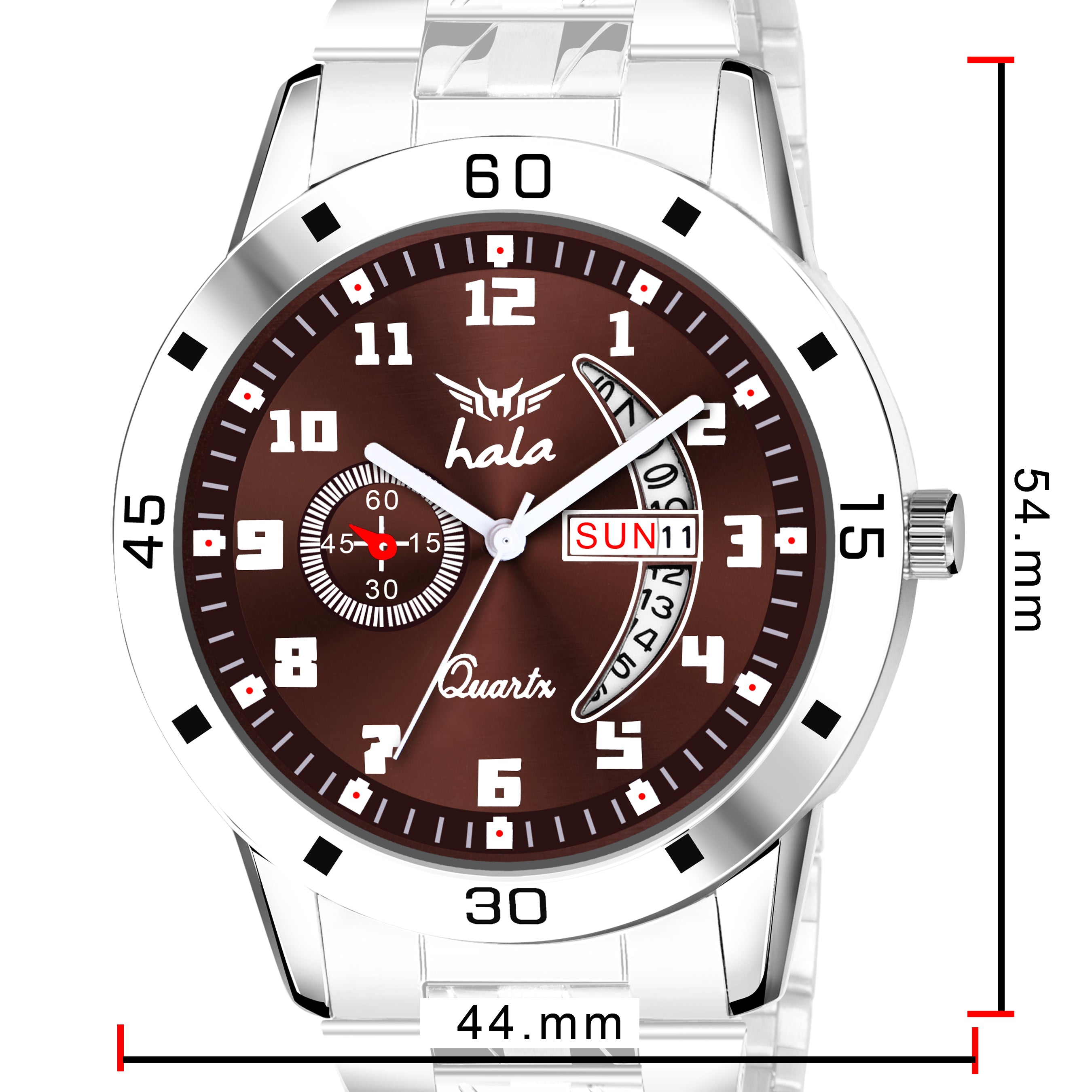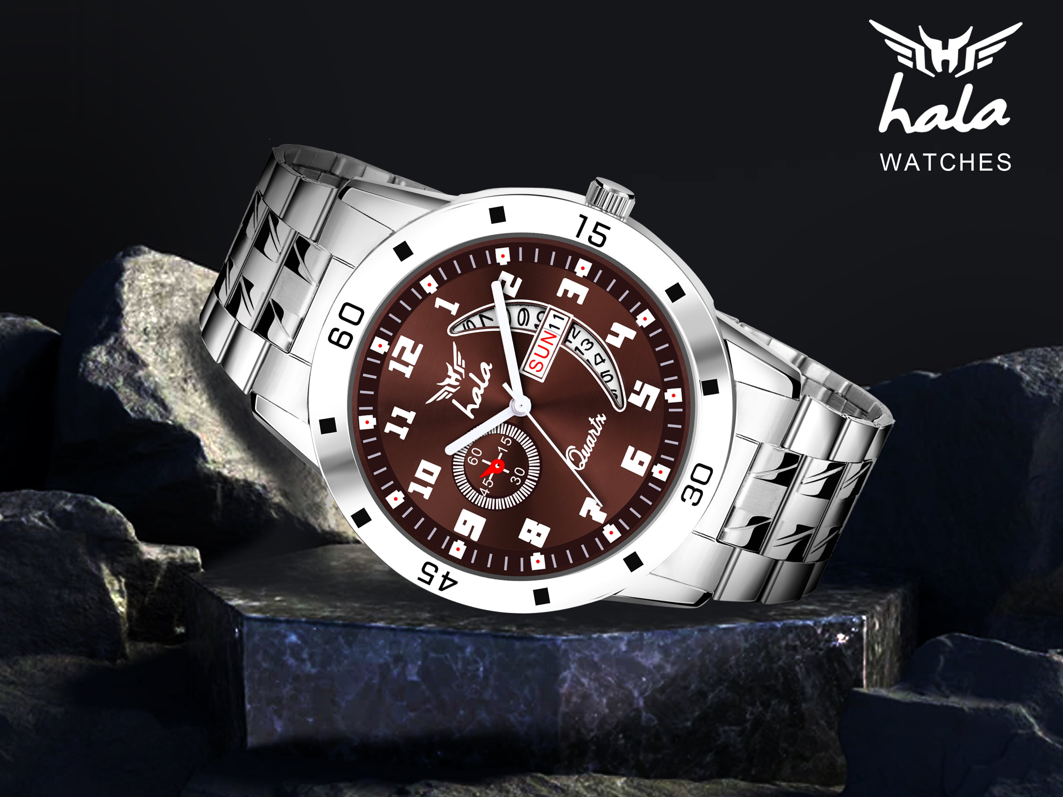 Enhance your style with the Hala 8188 Men's Analog Day & Date Watch. Featuring a rich blue dial, numeric hour markers, and a silver stainless steel strap, this watch offers the perfect balance of elegance and functionality. The day and date display adds practicality to its stylish appearance, while the sturdy build ensures durability. Ideal for men who value class and precision, this watch complements both business and casual looks effortlessly.