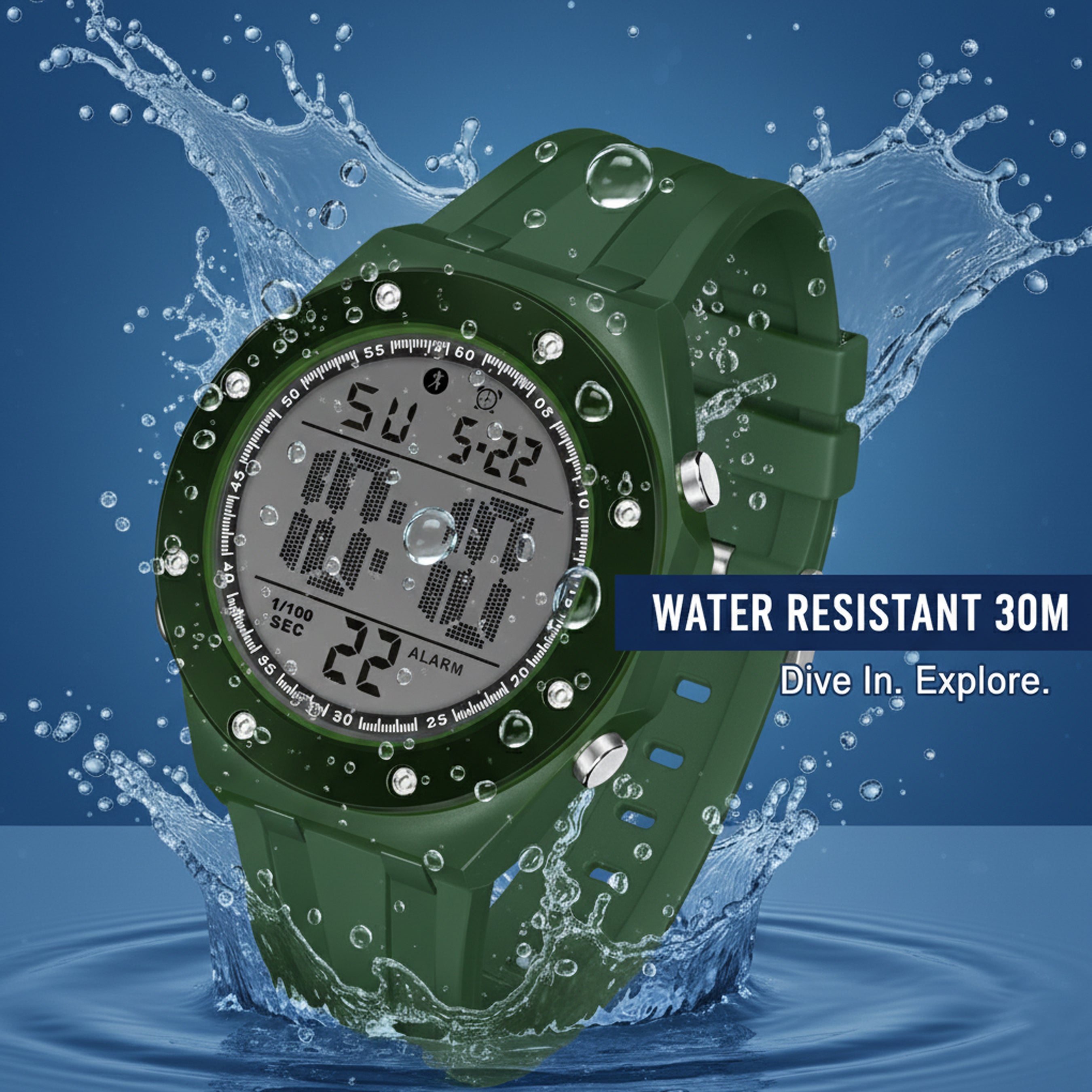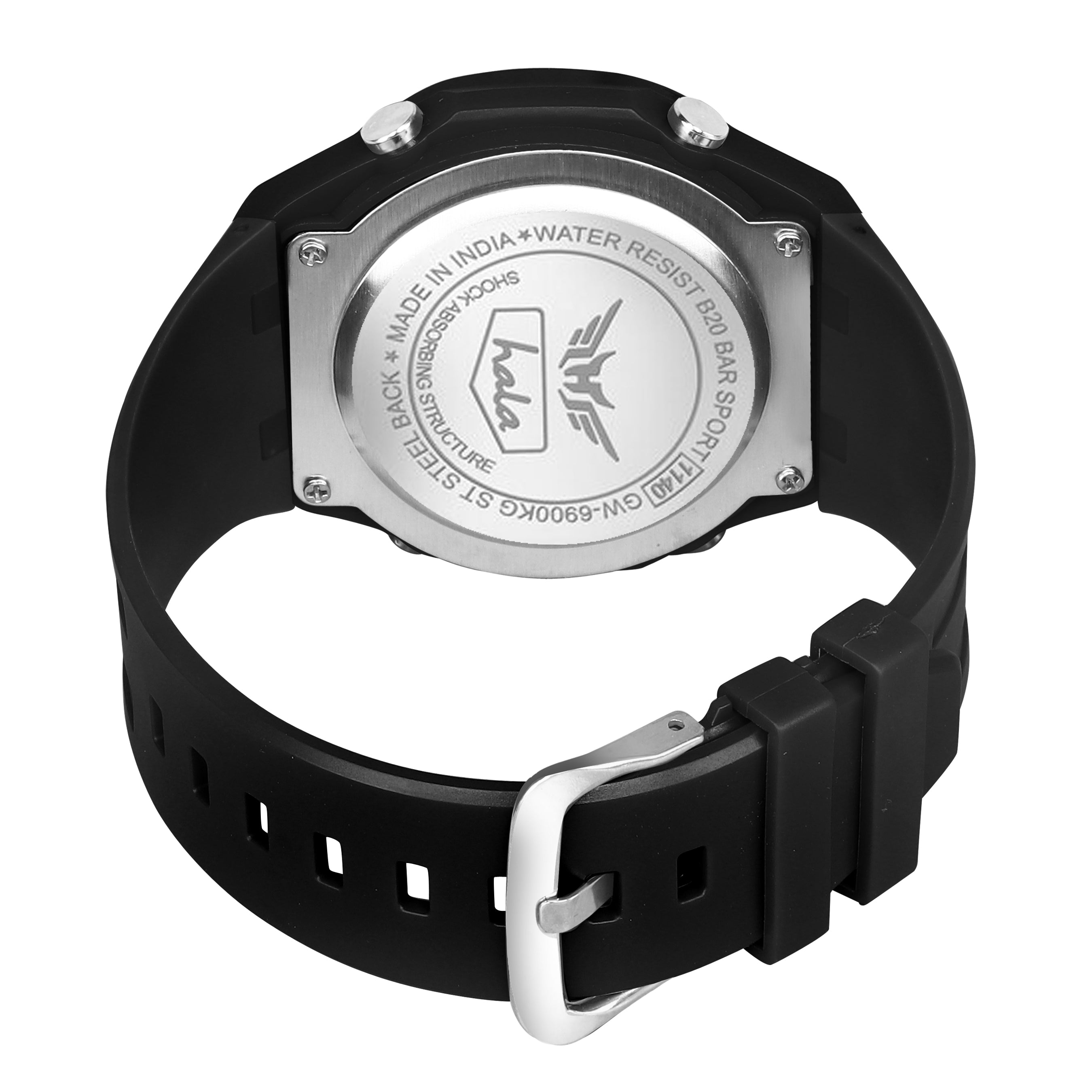 The HALA ShadowCore is built for people who take charge of every moment. With its bold black finish and durable PU strap, this digital watch delivers a strong, professional look with rugged performance. Its shock-resistant body, water-resistant design, and multi-function display make it perfect for sports, travel, and daily wear. The stopwatch and alarm functions keep your schedule precise, while the LED backlight ensures clear visibility in low light. A blend of style, endurance, and reliability—made for the modern man on the move.