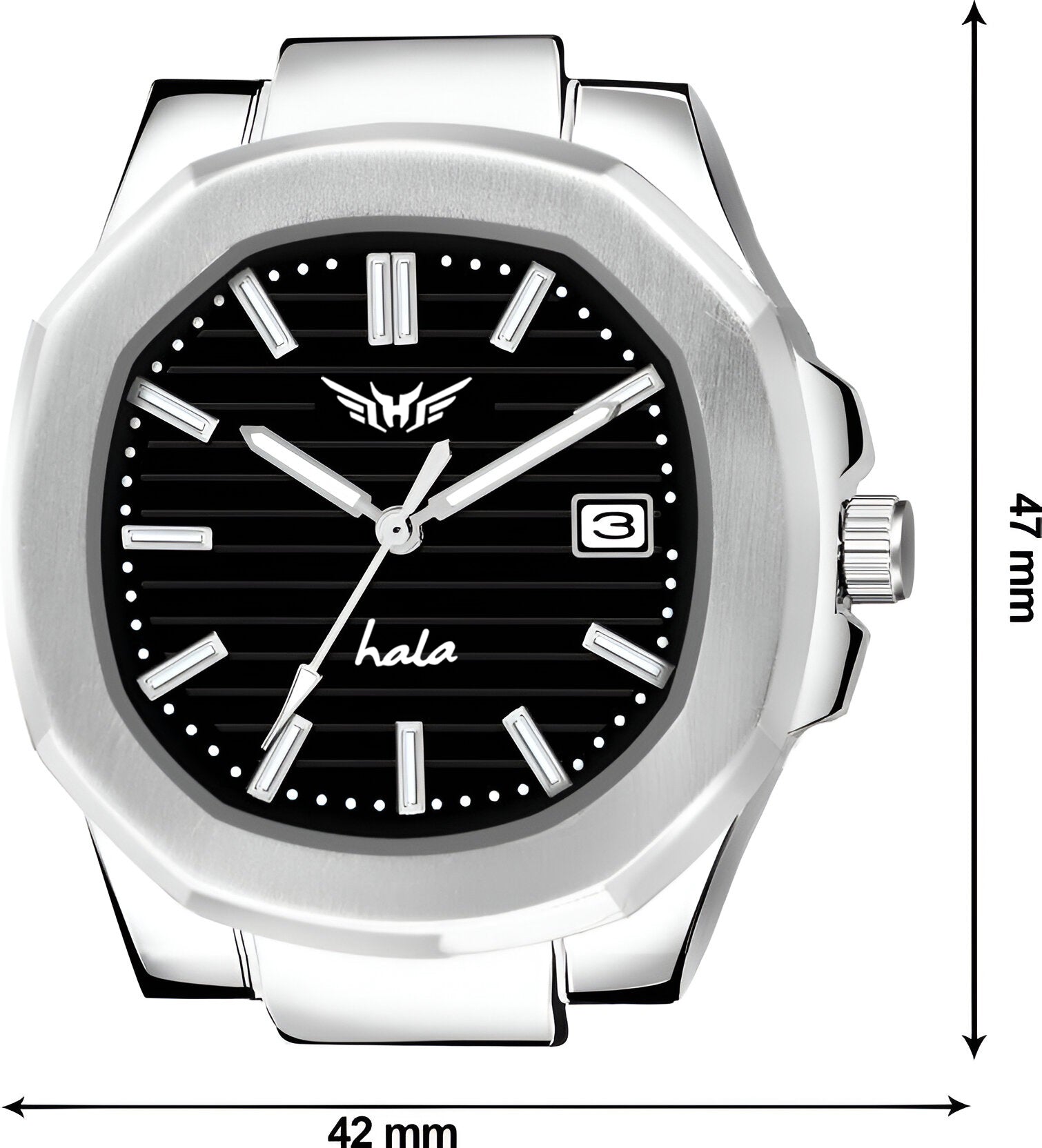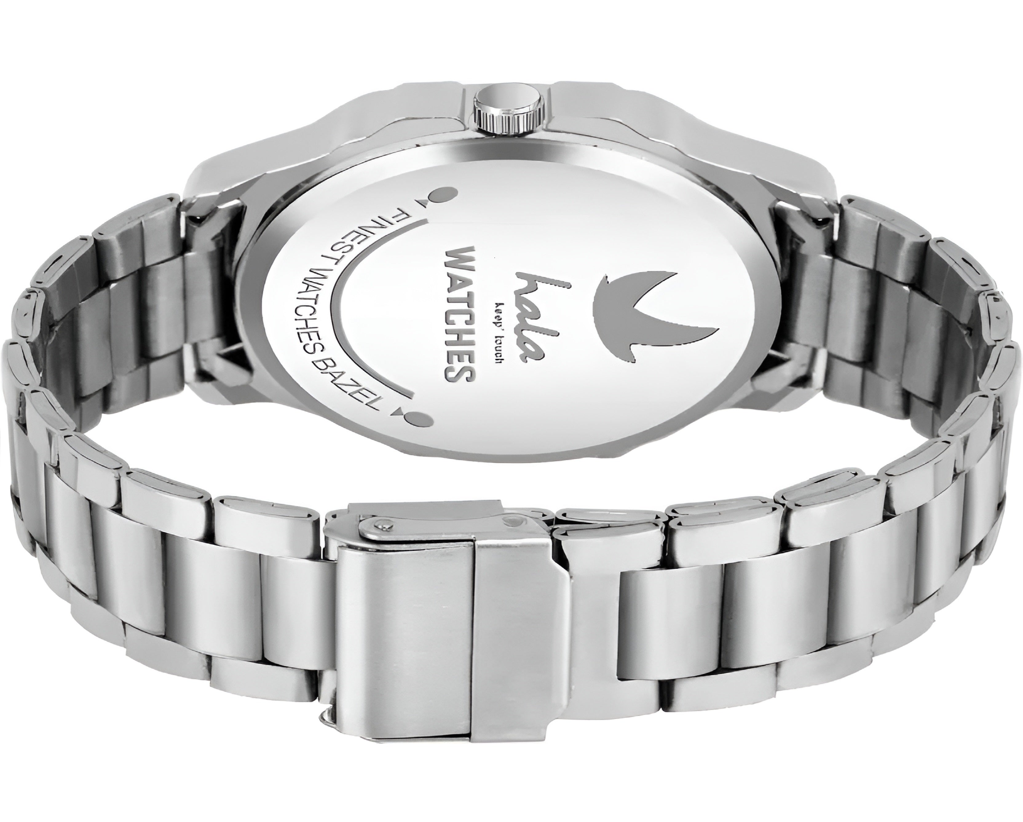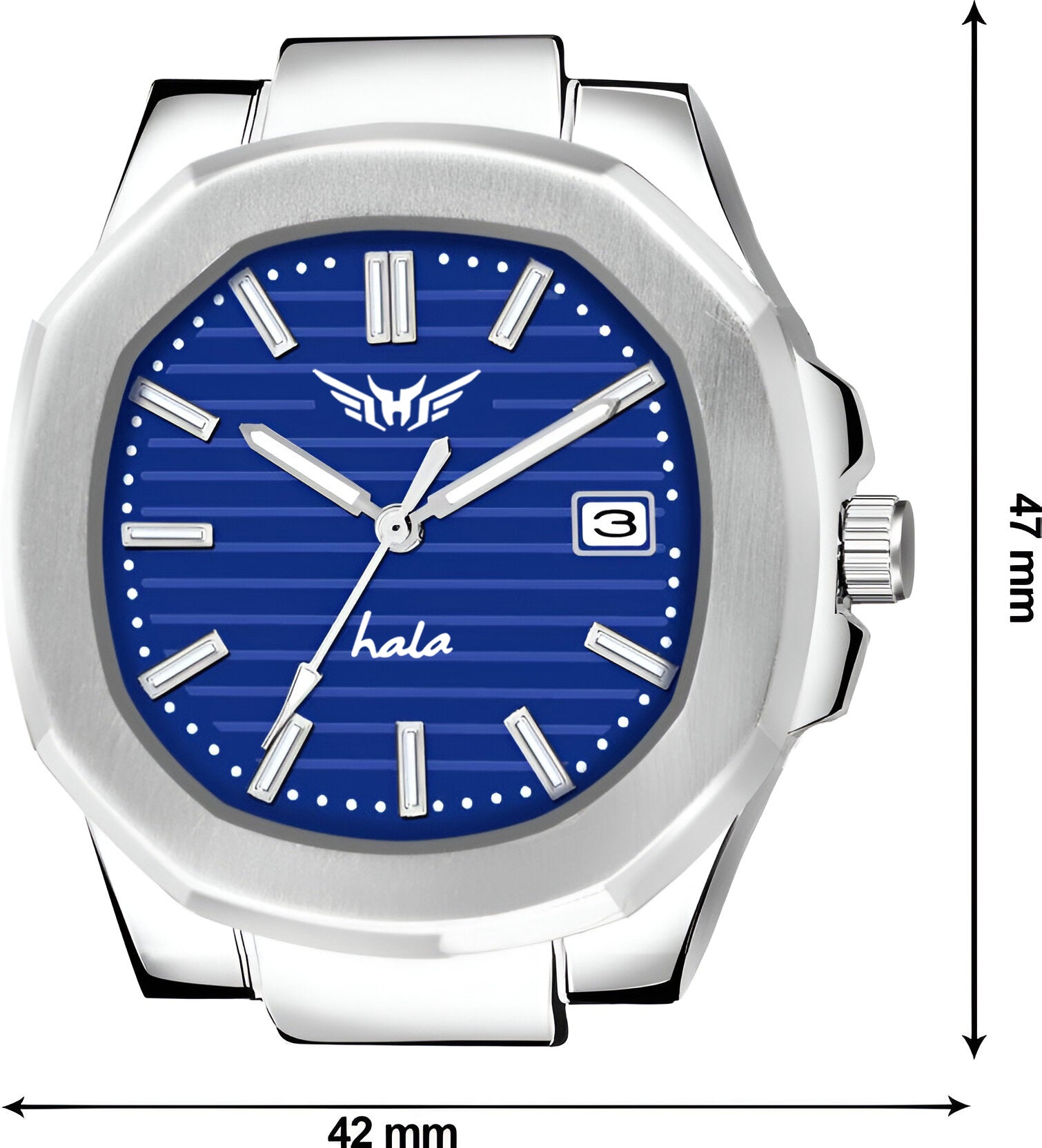 Upgrade your style with the Hala 3240 Men's Analog Watch, crafted to perfection with a stunning blue dial and premium silver stainless steel strap. The date display adds a touch of practicality, while the polished metal finish gives it a sophisticated edge. Designed for men who appreciate a balance of elegance and performance, this watch complements both formal and casual attire.