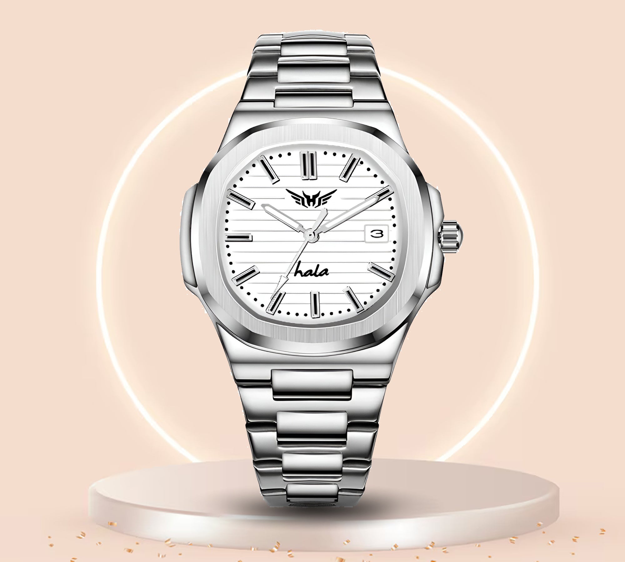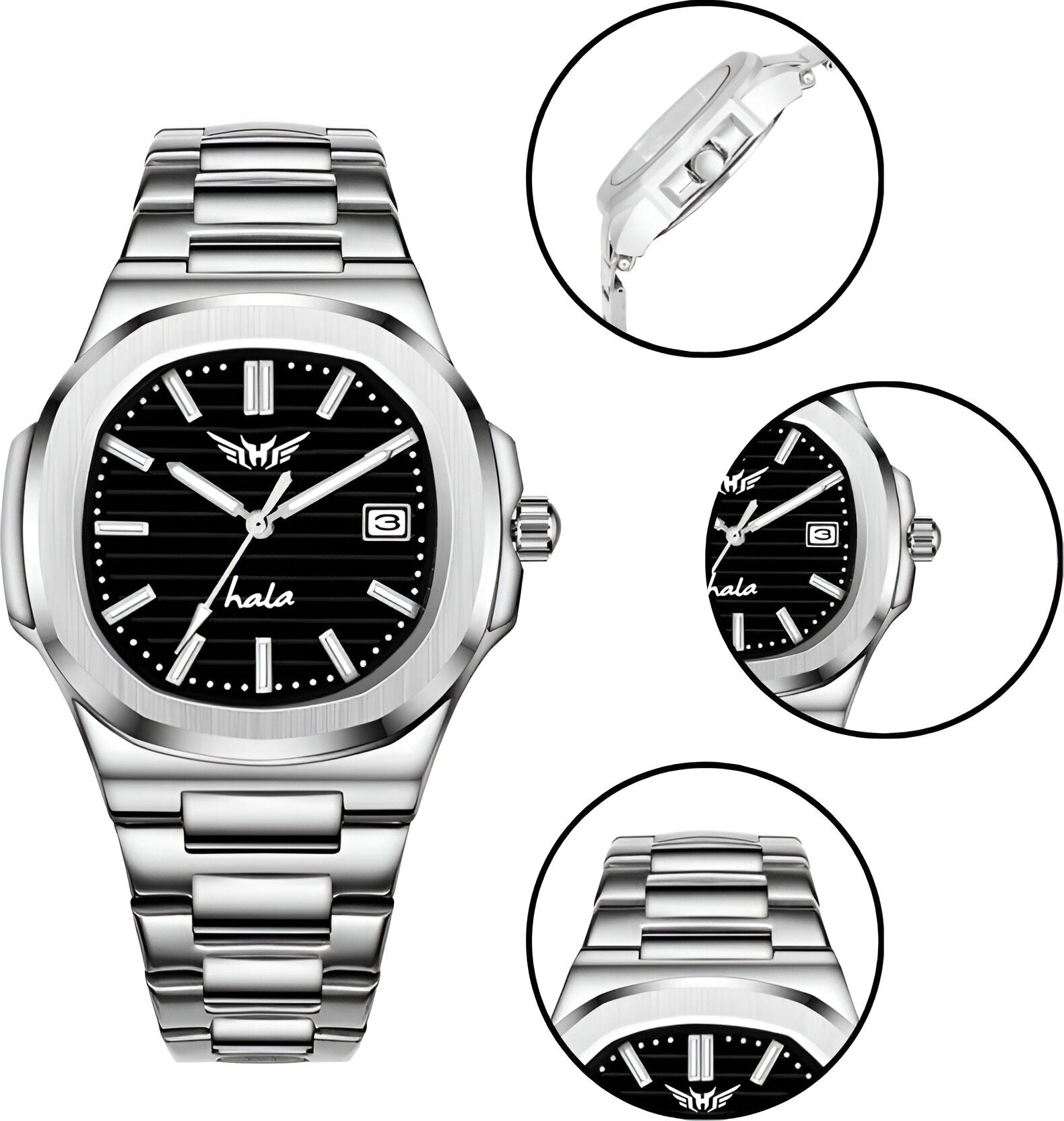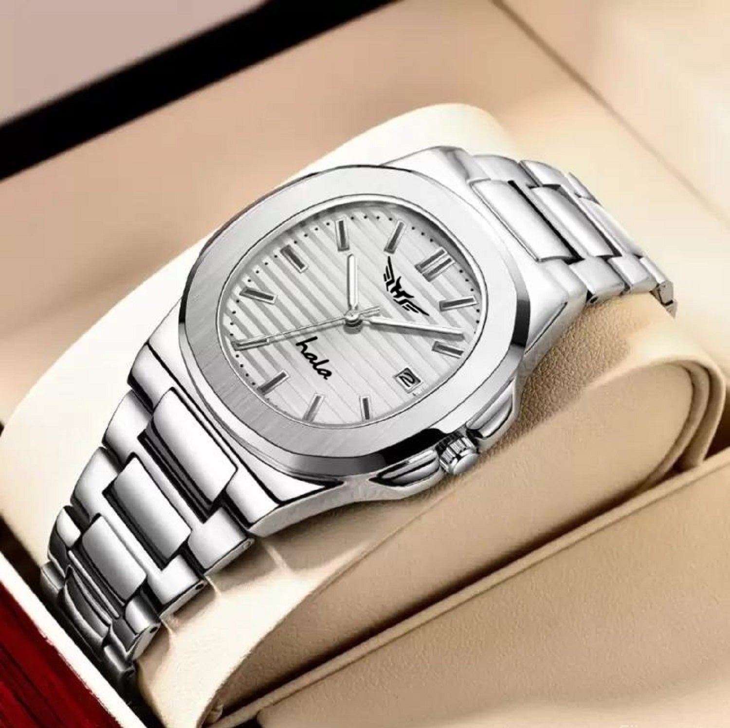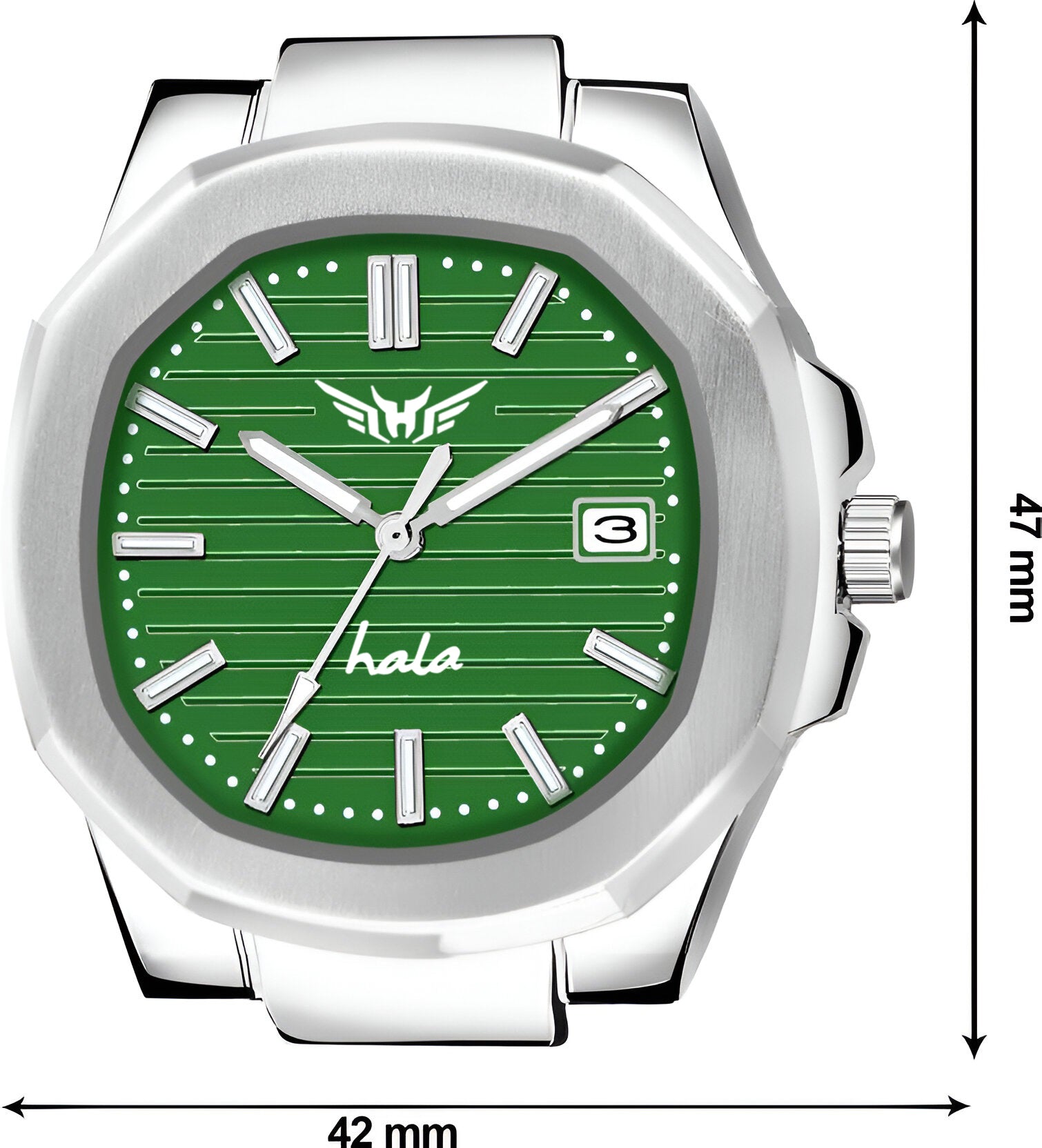 Upgrade your style with the Hala 3240 Men's Analog Watch, crafted to perfection with a stunning blue dial and premium silver stainless steel strap. The date display adds a touch of practicality, while the polished metal finish gives it a sophisticated edge. Designed for men who appreciate a balance of elegance and performance, this watch complements both formal and casual attire.