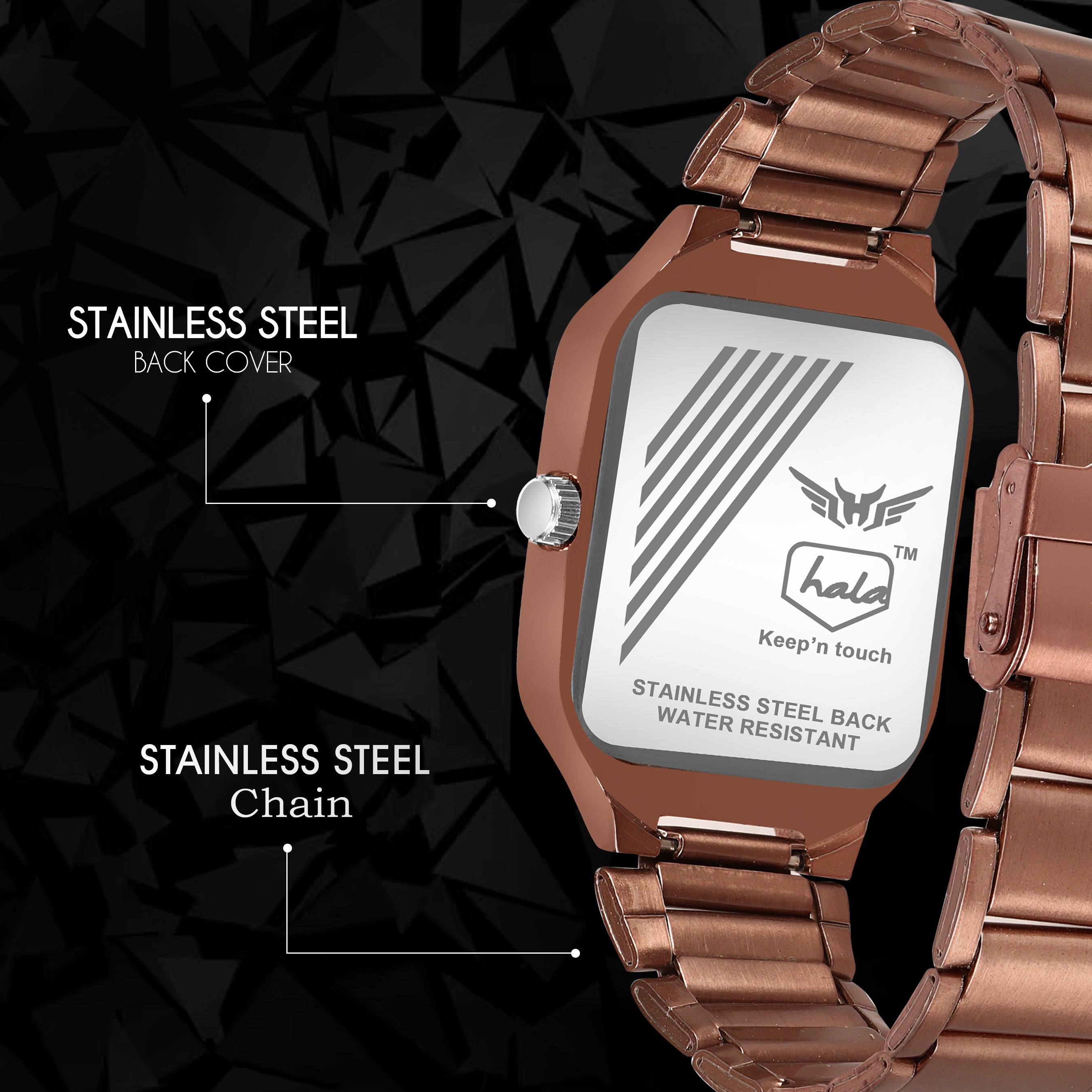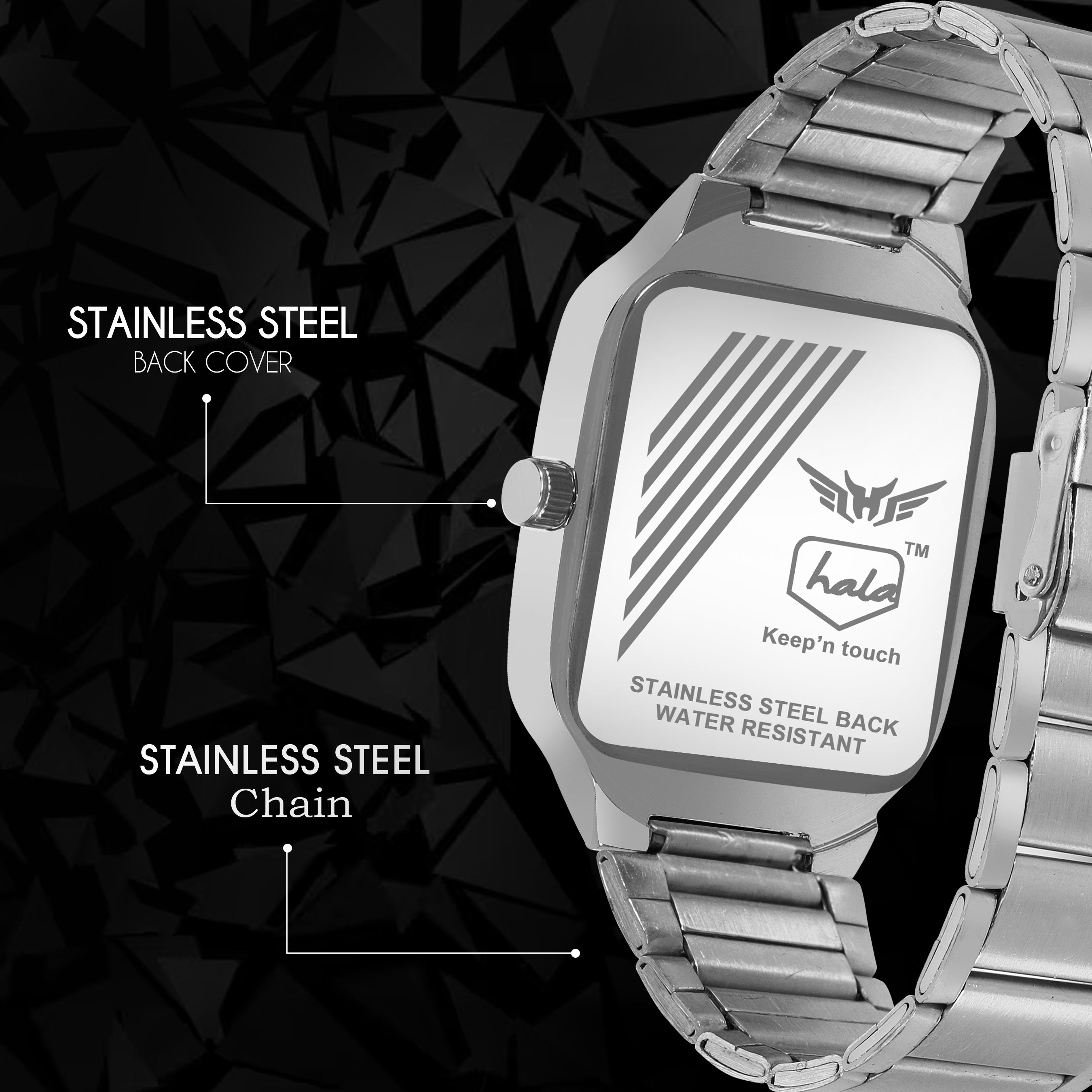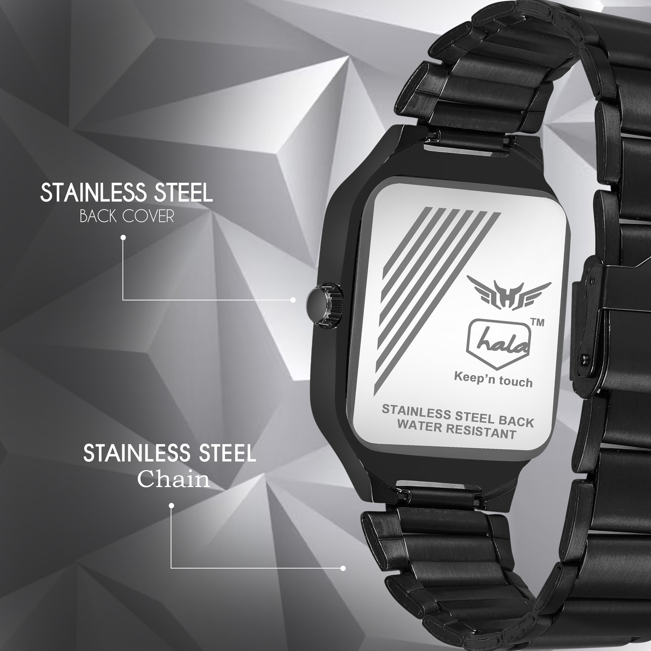 Make a bold fashion statement with the Hala 8186 Men's Analog Watch. Designed with a sleek square black dial and matching full black stainless steel strap, this timepiece adds a touch of sophistication to your everyday look. The clean dial design, paired with durable construction and reliable quartz movement, makes it an ideal companion for men who appreciate both style and substance. Perfect for work, parties, or gifting.